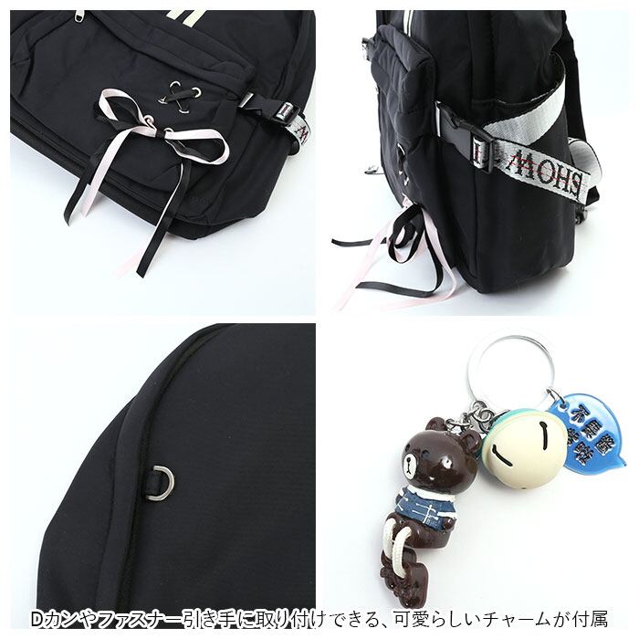 ・Dカンやファスナー引き手に取り付けできる、可愛らしいチャームが付属。