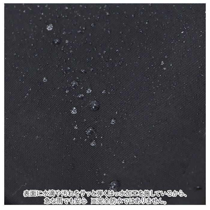 ・表面に水滴や汚れをサッと弾くはっ水加工を施しているから、急な雨でも安心。(※完全防水ではありません。)