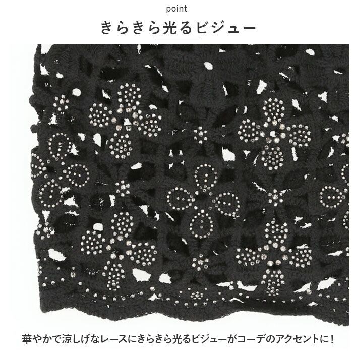 ・華やかで涼しげなレースにきらきら光るビジューがコーデのアクセントに!