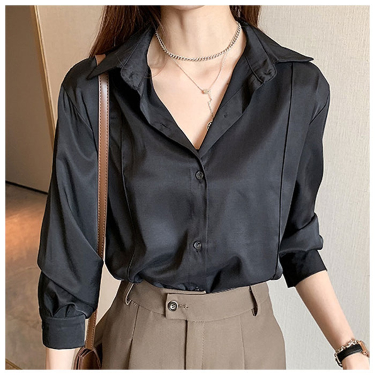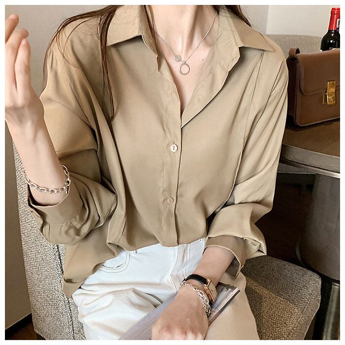 ・とろんっと大人な着こなしを楽しめる、長袖ブラウス。