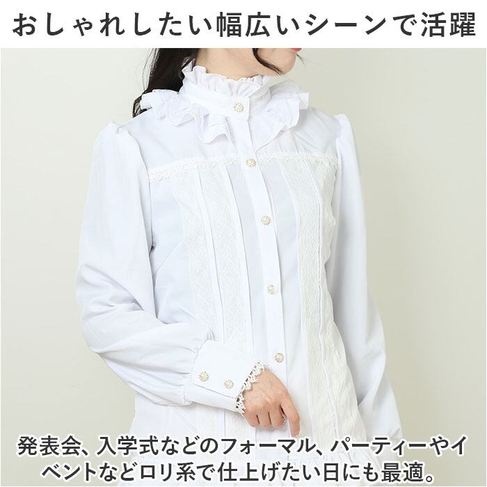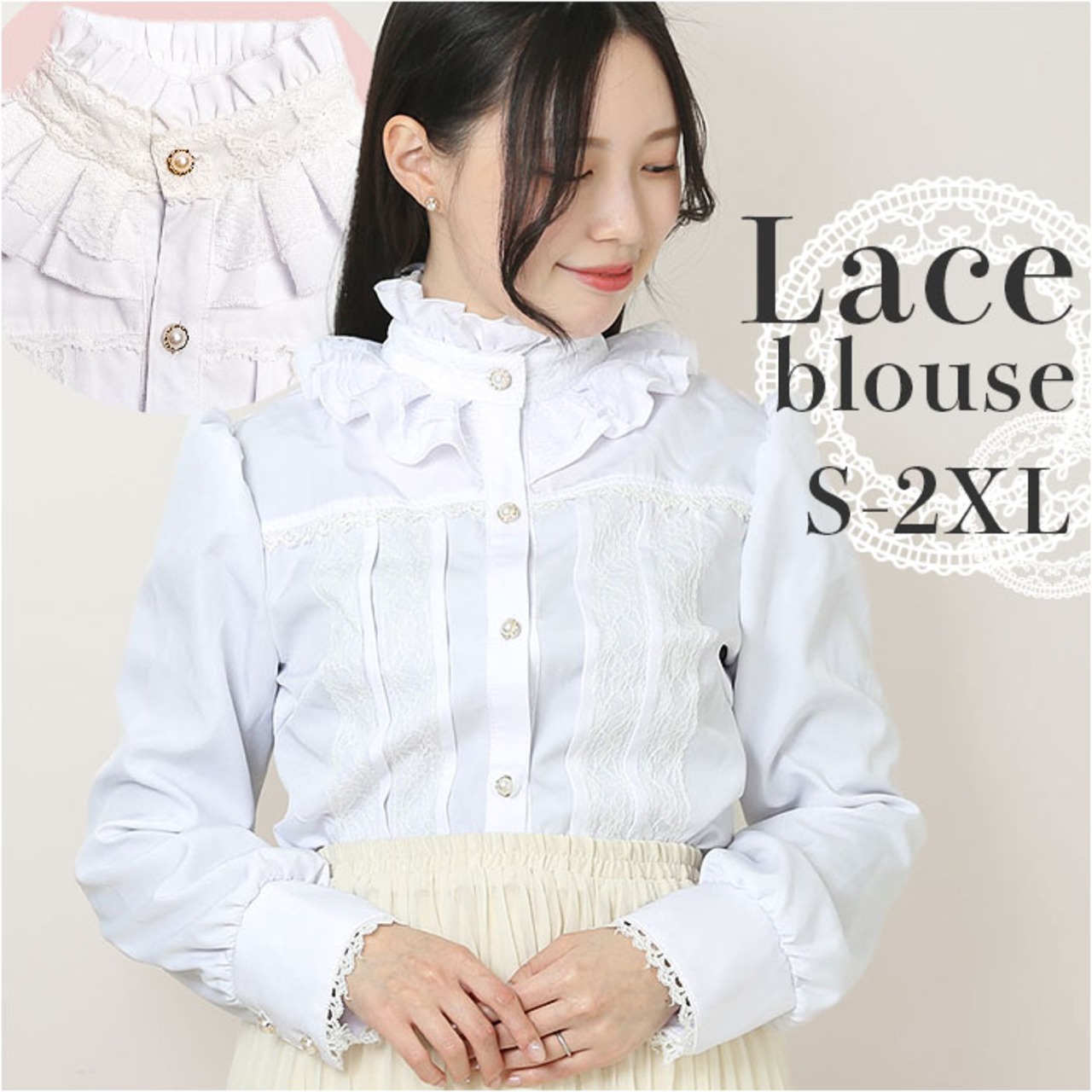 ブラウス レース レディース 通販 シャツ 襟付きシャツ フリル 長袖 フォーマル 襟付き 襟 春秋 春 秋 上品 エレガント イベント パーティー ゴシック 結婚式 お祝い かわいい 可愛い きれいめ おしゃれ