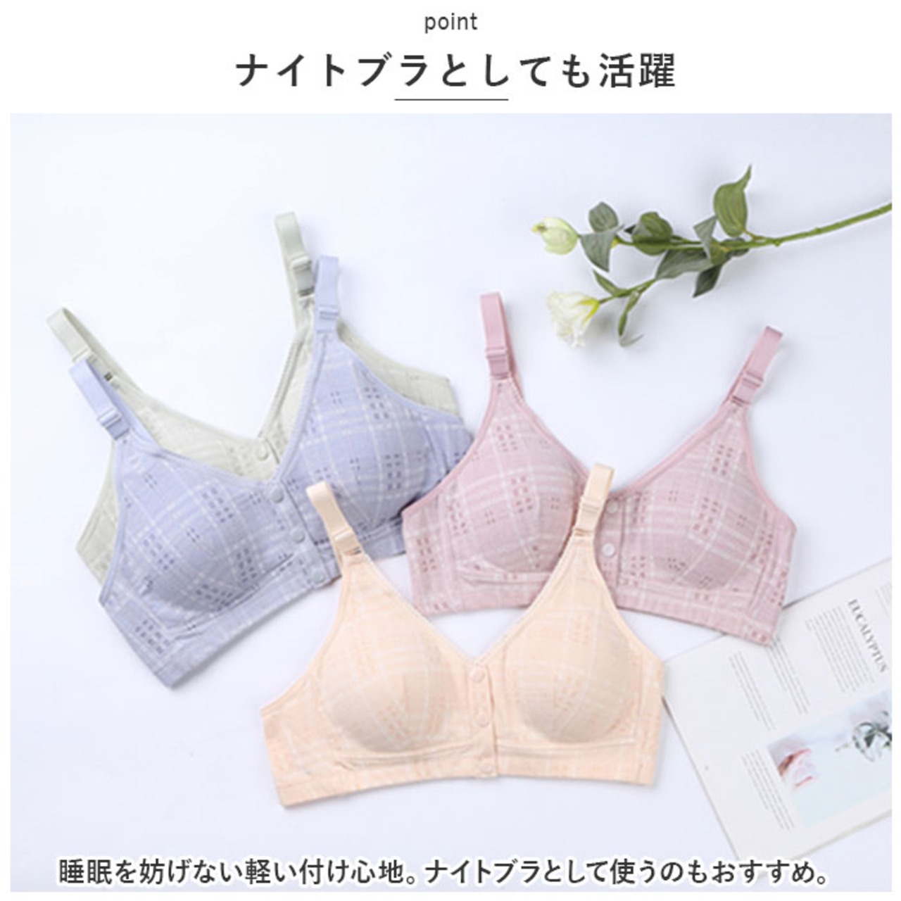 ・バストを優しく包み込んで、締めつけ感なし◎ラクラク授乳できる前開きブラが新登場。
