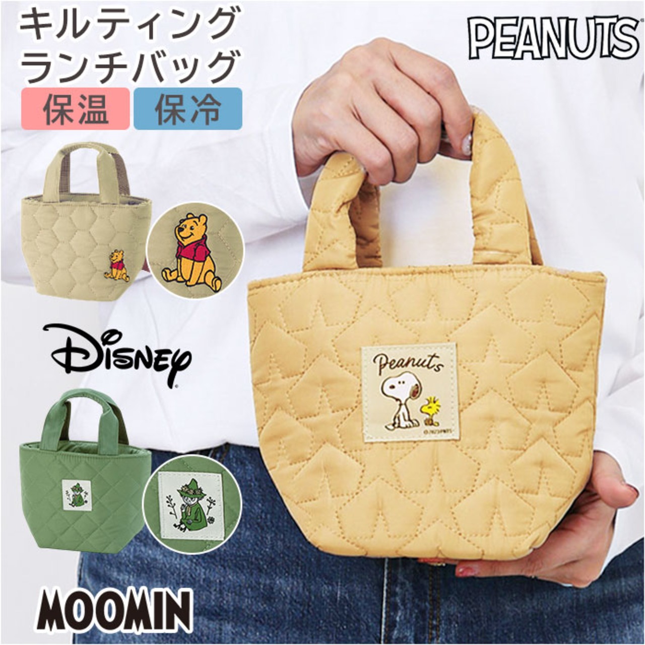・ランチのお供に☆キャラクターデザイン&コンパクトな「キルティング生地保温バッグ」。