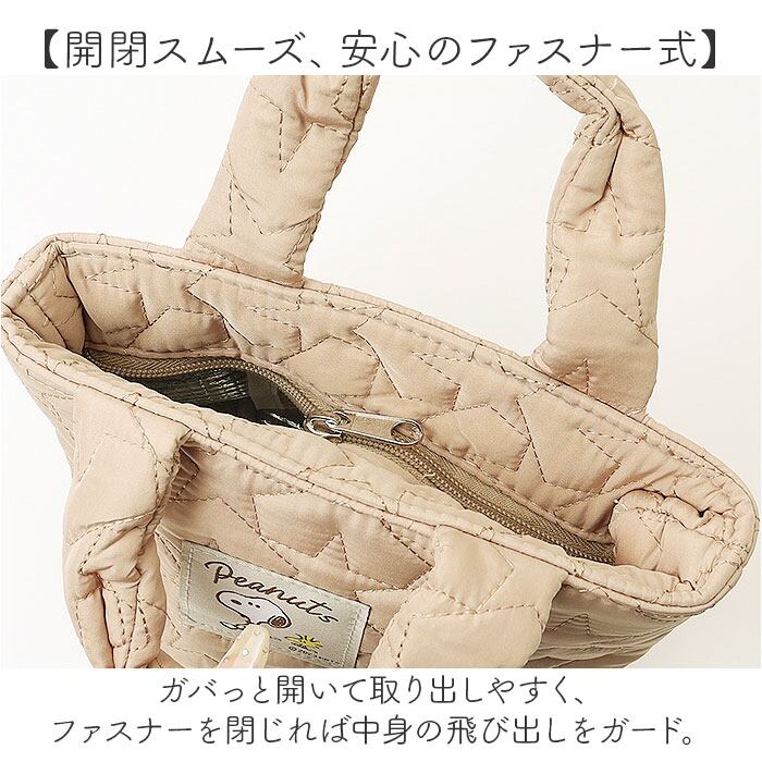 ・ふんわりキルティング生地に、キャラクターの刺繍ワッペンをON!おしゃれに持てるアイテム。