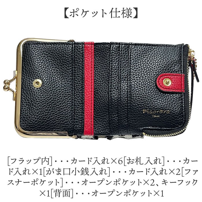Pisoraro ピソラロ ハラコ がま口二つ折りミニウォレット