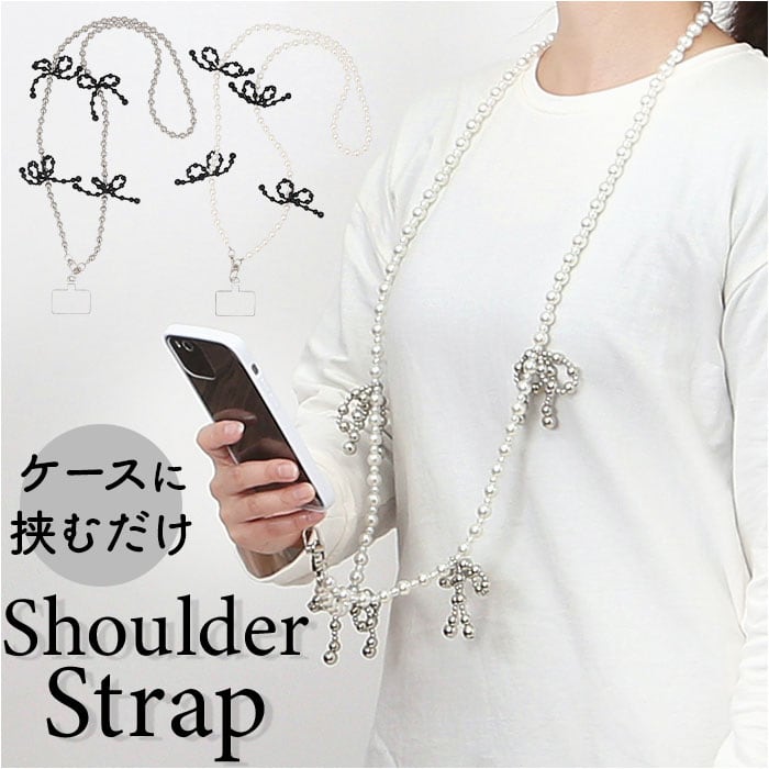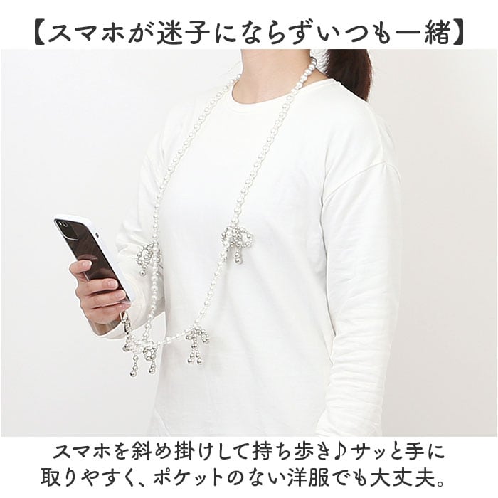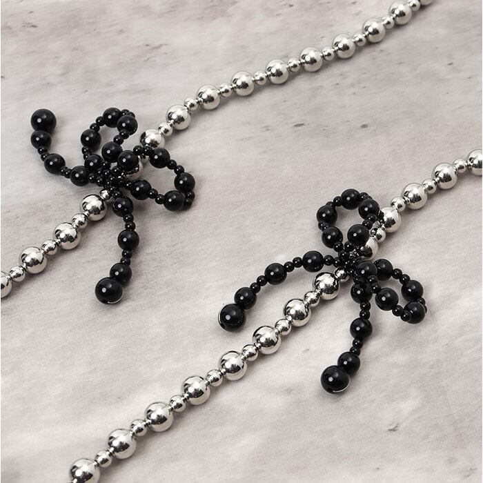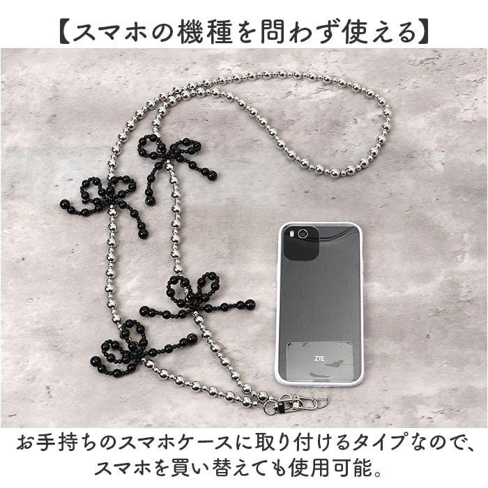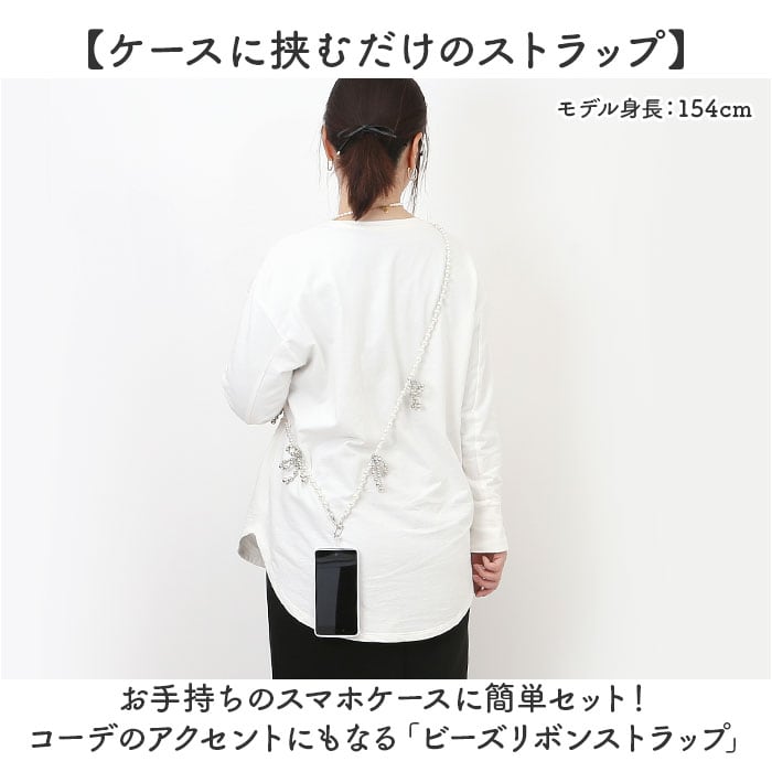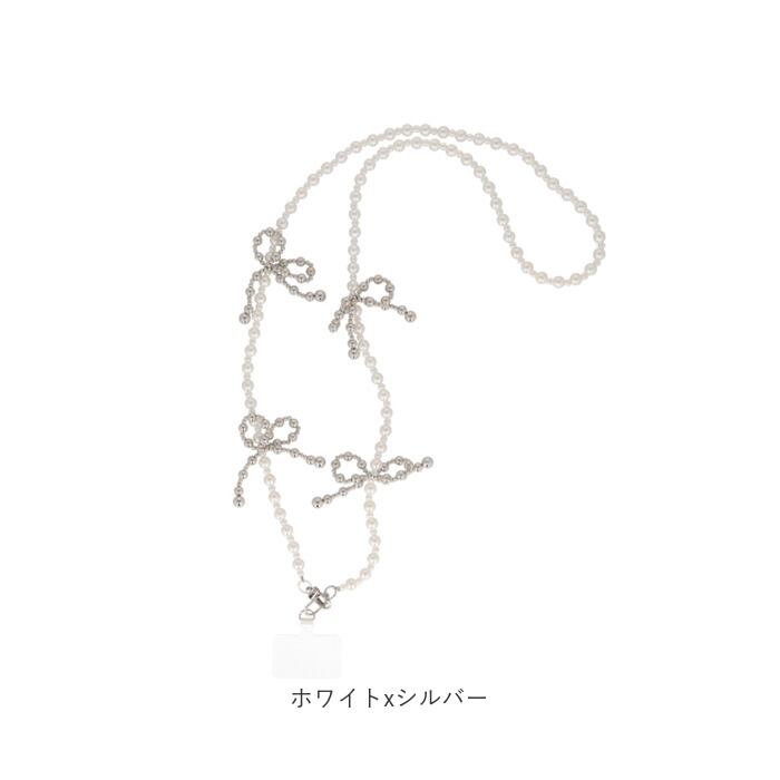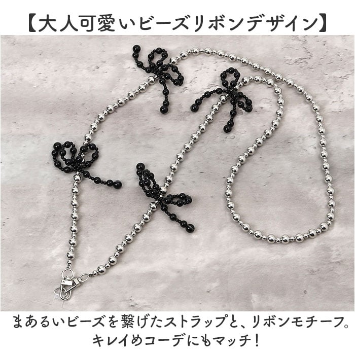 ・まあるいビーズを繋げたストラップと、リボンモチーフ。キレイめコーデにもマッチ!
