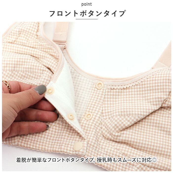 ・着脱が簡単なフロントボタンタイプ。授乳時もスムーズに対応◎