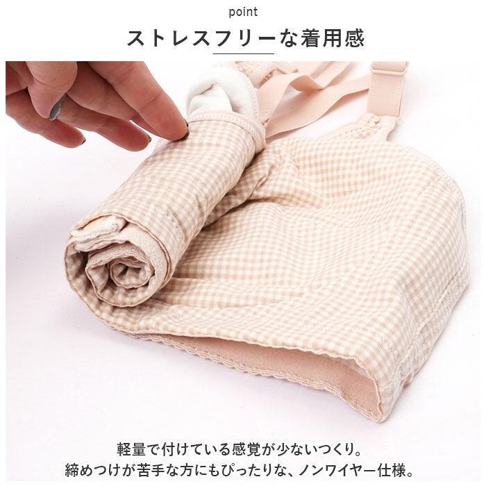 ・カップ部分内側は柔らかな生地感で、お肌が敏感な時期も安心。