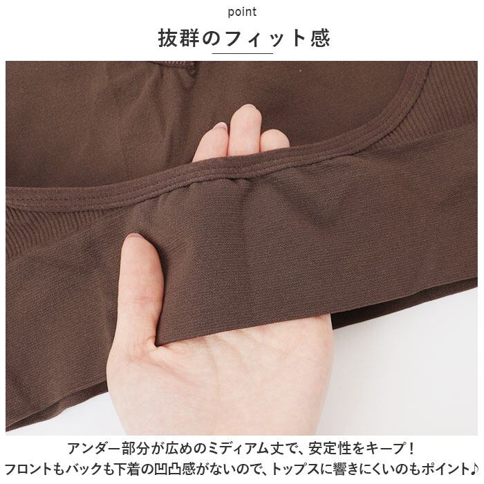 ・アンダー部分が広めのミディアム丈で、安定性をキープ!フロントもバックも下着の凹凸感がないので、トップスに響きにくいのもポイント♪