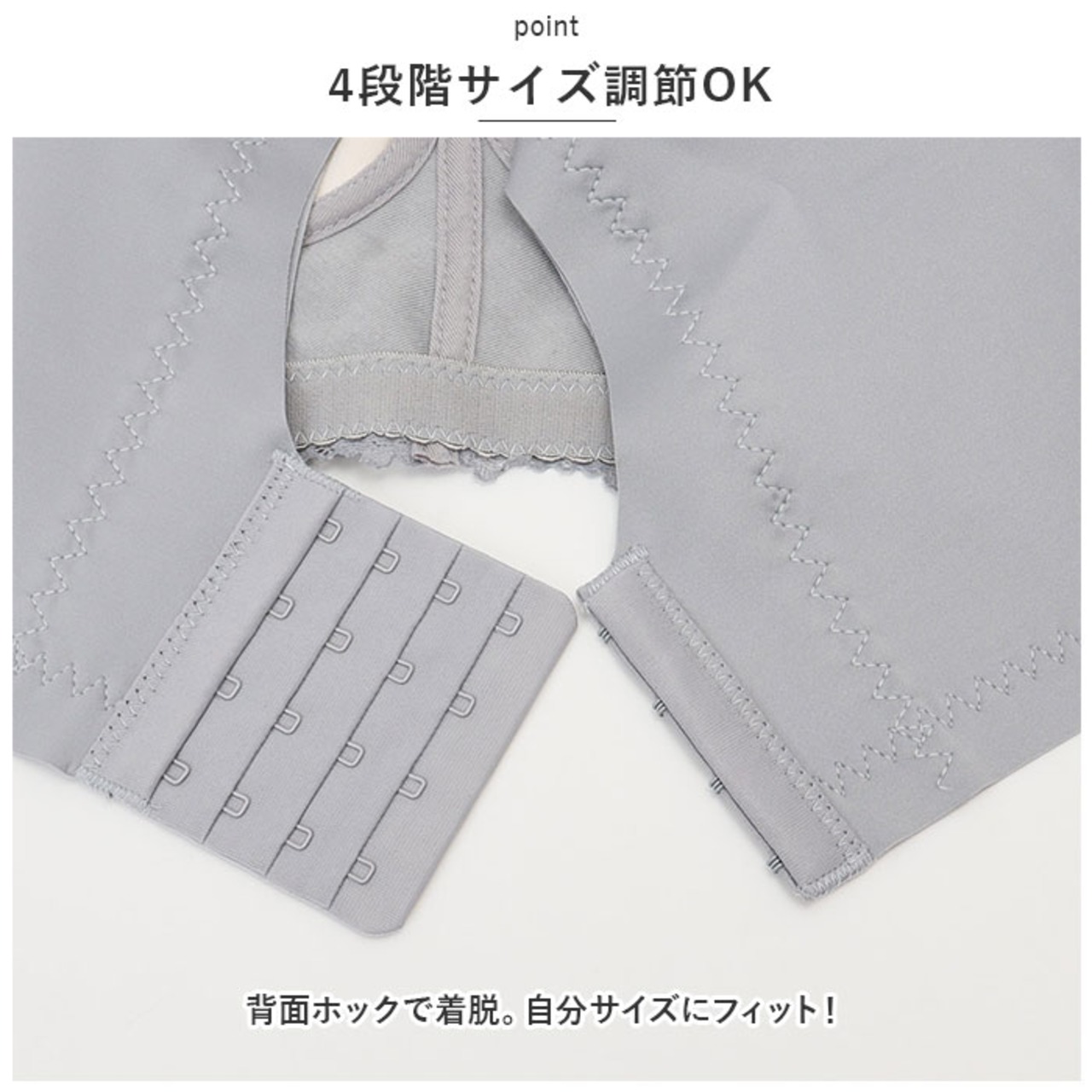 ・背面ホックで着脱。自分サイズにフィット!