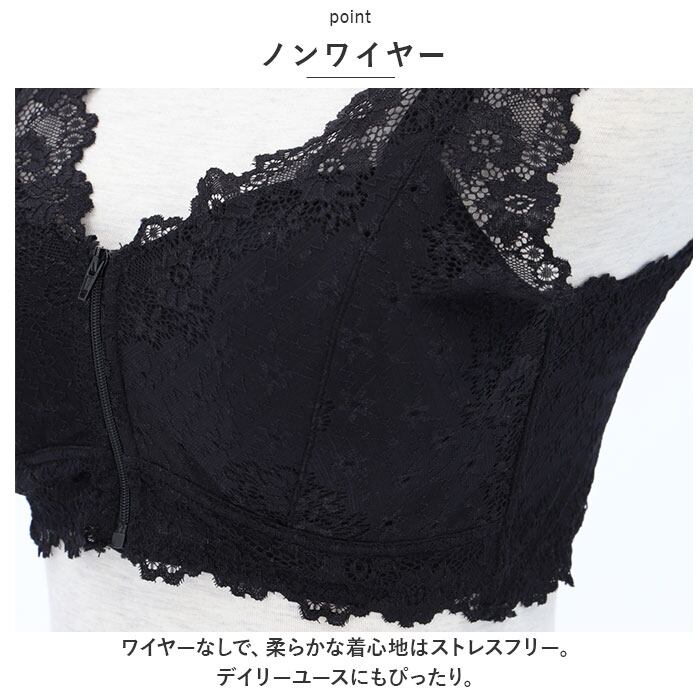 フロントファスナー ブラジャー 通販 ブラ 女性下着 下着 肌着 ランジェリー インナー インナーウエア ノンワイヤー 前開き 脇高 幅広 フルカップ 大きいサイズ 授乳 産前 産後 レース 通気性 おしゃれ オシャレ 簡単 楽 ナイトブラ