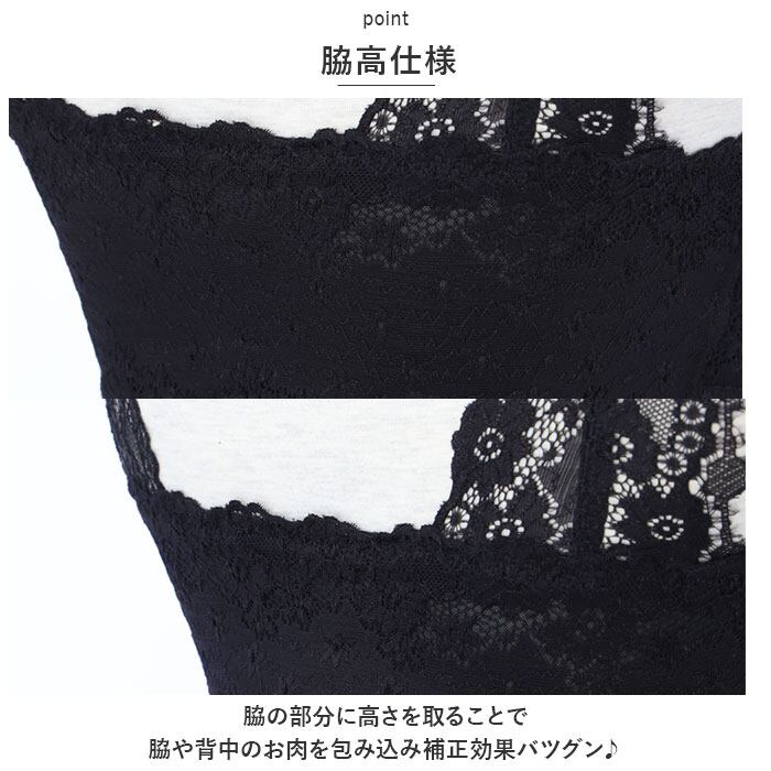 ・脇の部分に高さを取ることで、脇や背中のお肉を包み込み補正効果バツグン♪