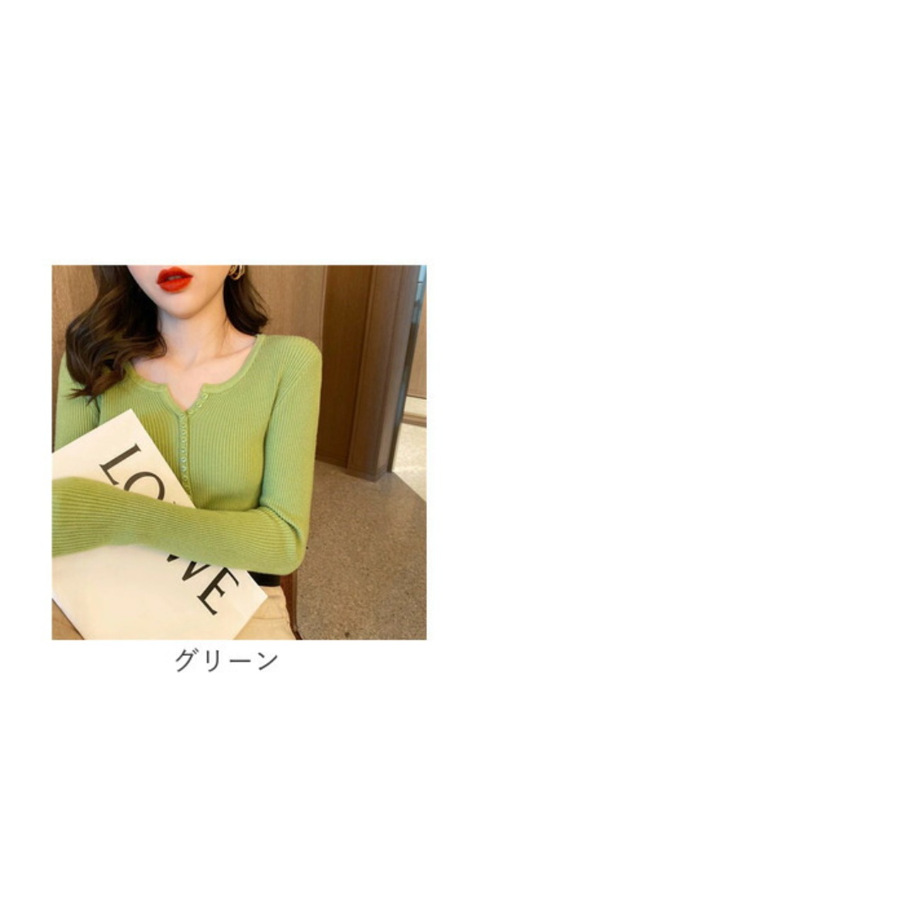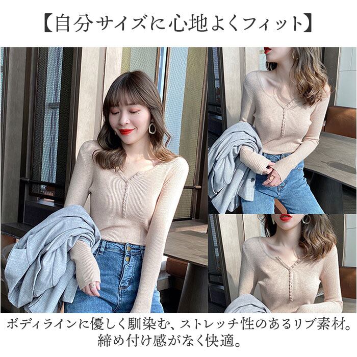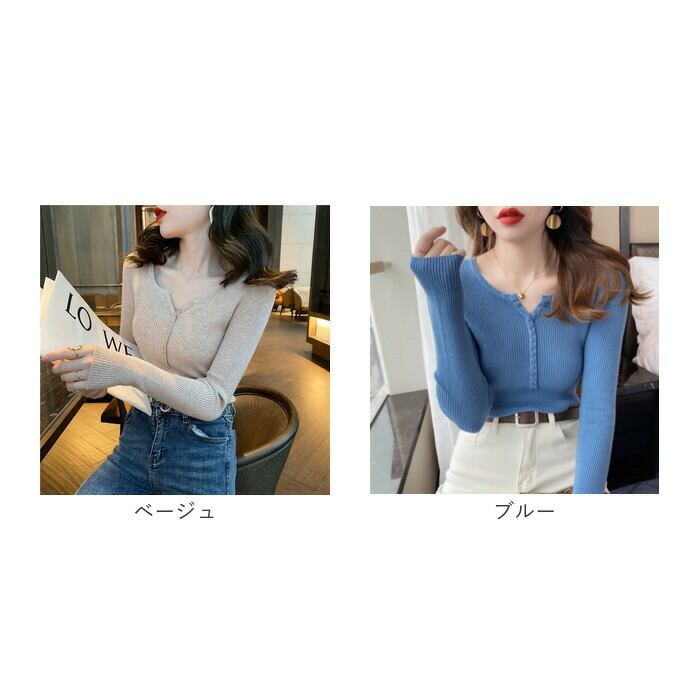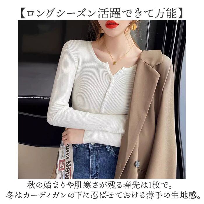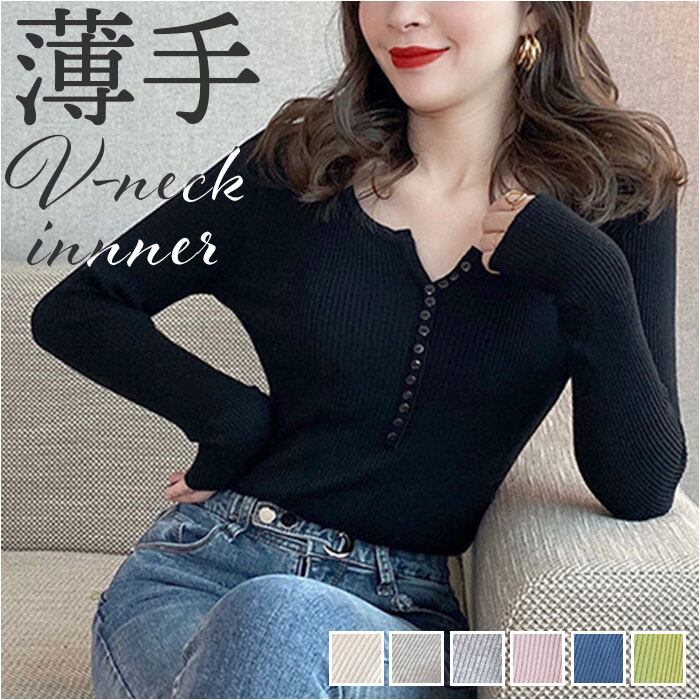 インナーニット トップス 通販 長袖ニット レディース 薄手 Vネック リブニット ニット 長袖 きれいめ レイヤード フロントボタン シンプル 無地 お出かけ 通勤 通学 おしゃれ かわいい 秋 冬 セーター ロンT レディースファッション