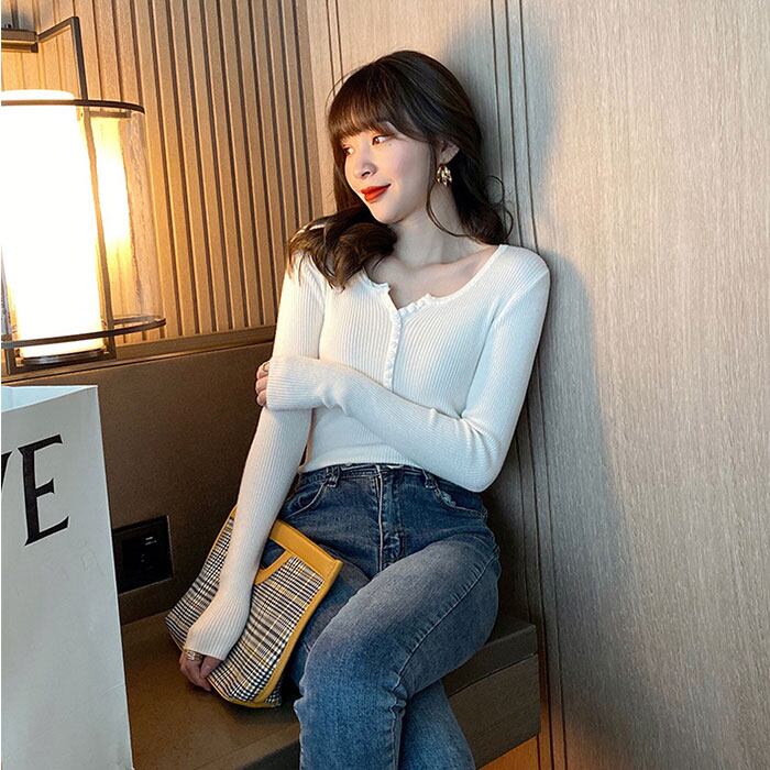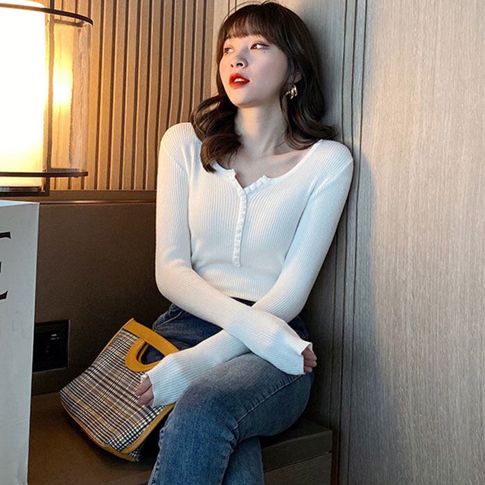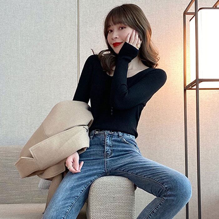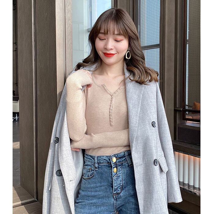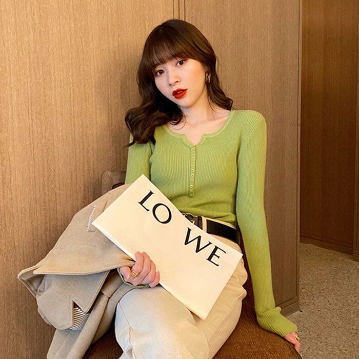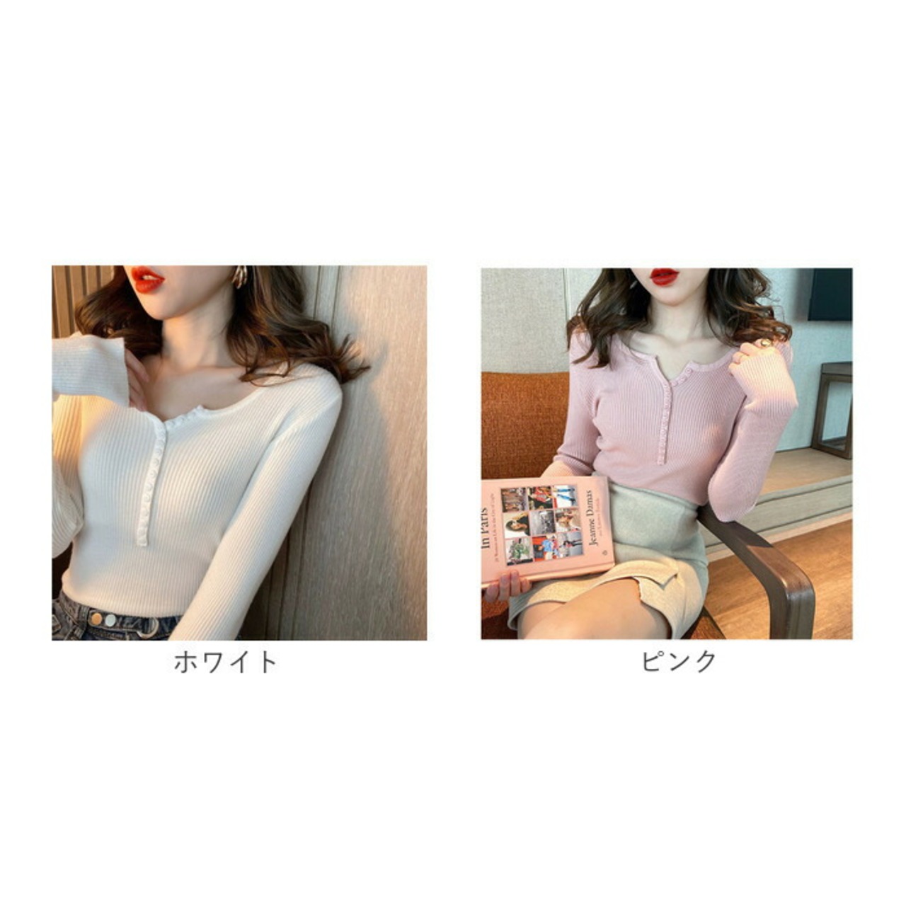 インナーニット トップス 通販 長袖ニット レディース 薄手 Vネック リブニット ニット 長袖 きれいめ レイヤード フロントボタン シンプル 無地 お出かけ 通勤 通学 おしゃれ かわいい 秋 冬 セーター ロンT レディースファッション