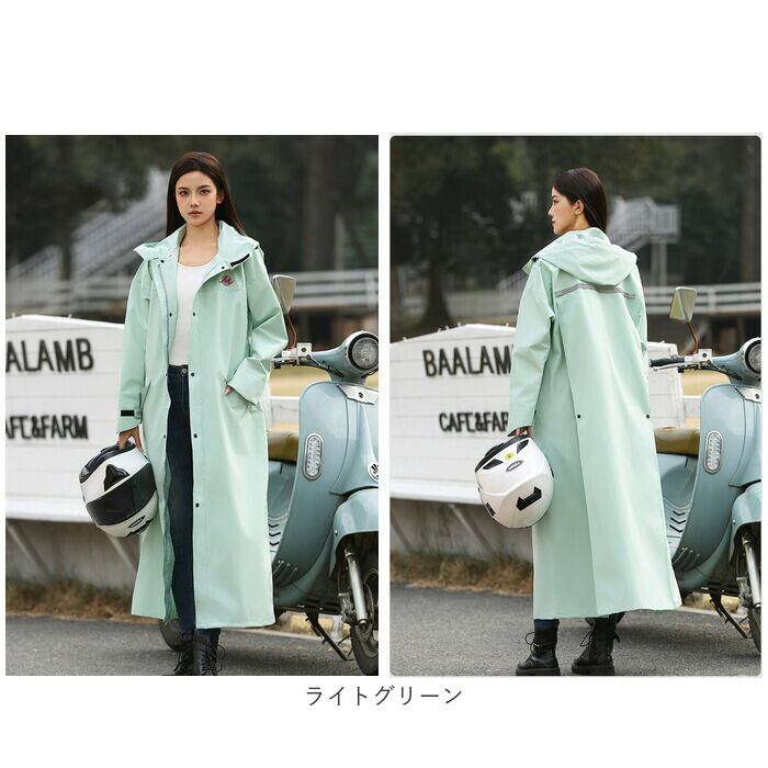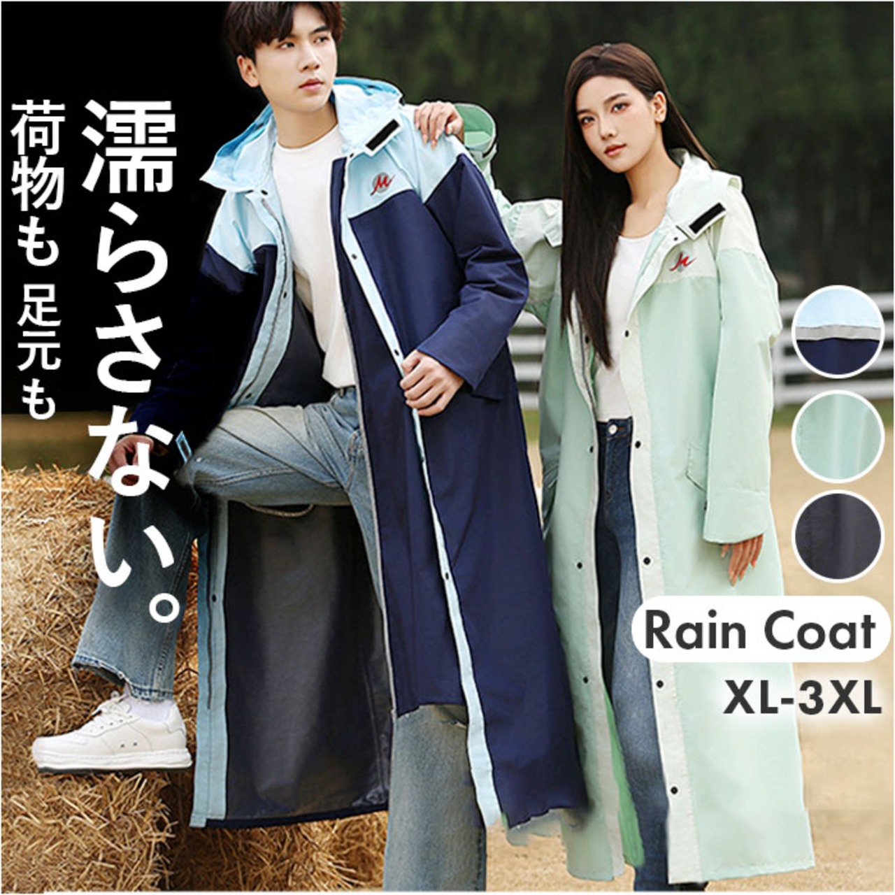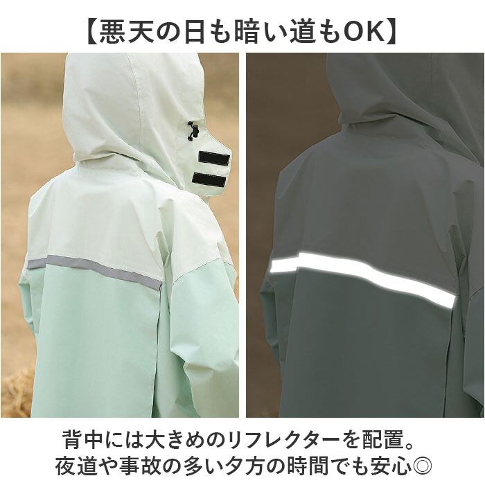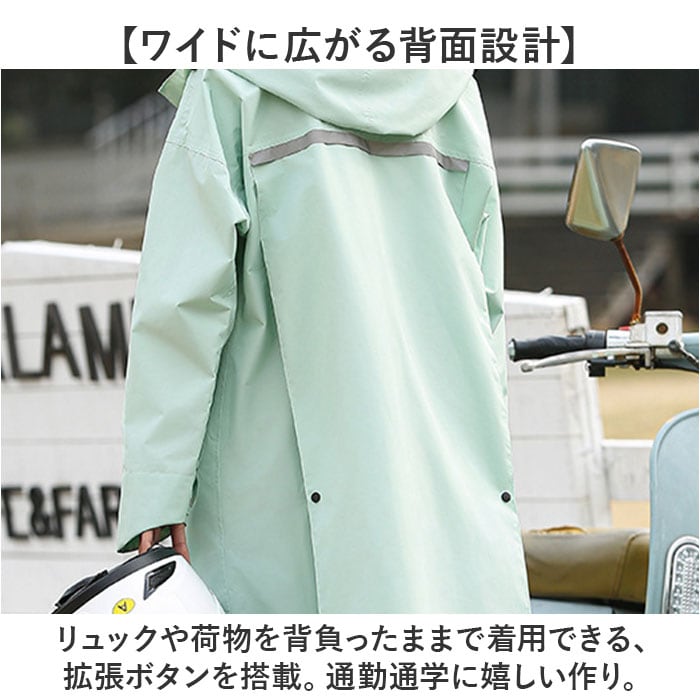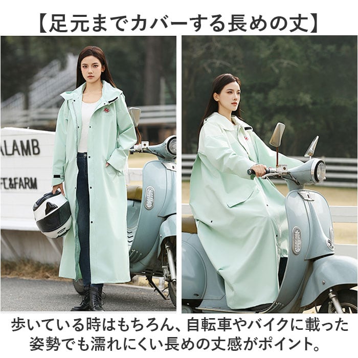 ・歩いている時はもちろん、自転車やバイクに載った姿勢でも濡れにくい長めの丈感がポイント。