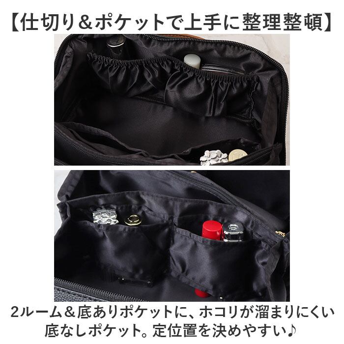 ・2ルーム&底ありポケットに、ホコリが溜まりにくい底なしポケット。定位置を決めやすい♪