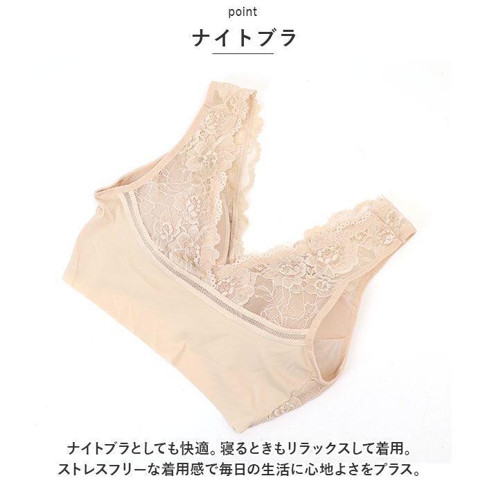・ナイトブラとしても快適。寝るときもリラックスして着用。ストレスフリーな着用感で毎日の生活に心地よさをプラス。