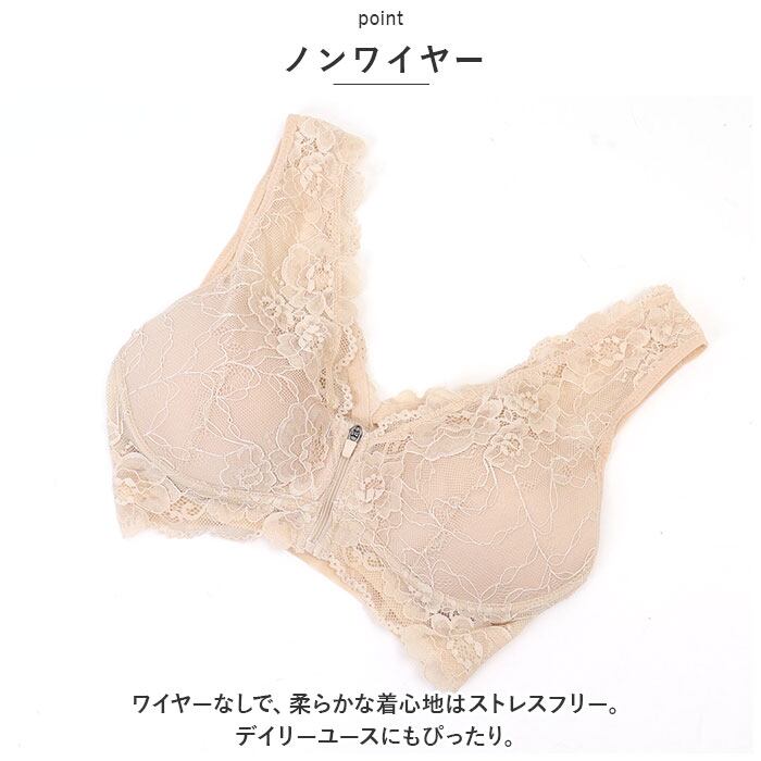 フロントファスナー ブラジャー 通販 ブラ 女性下着 下着 肌着 ランジェリー インナー インナーウエア ノンワイヤー 前開き フルカップ 大きいサイズ 授乳 産前 産後 レース おしゃれ オシャレ 通気性 伸縮性 簡単 楽 ナイトブラ 昼夜兼用 楽 ストレスフリー