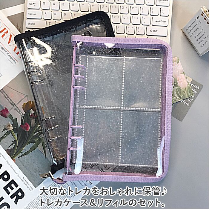 トレカケース 可愛い 通販 コレクトブック ケース バインダー トレカホルダー ファイル カードポケット付き リフィル セット スリーブ チャック付き クリア 透明 キラキラ 6穴 4ポケット 写真入れ アルバム デコ チェキ カード 大容量 収納 整理 推し活