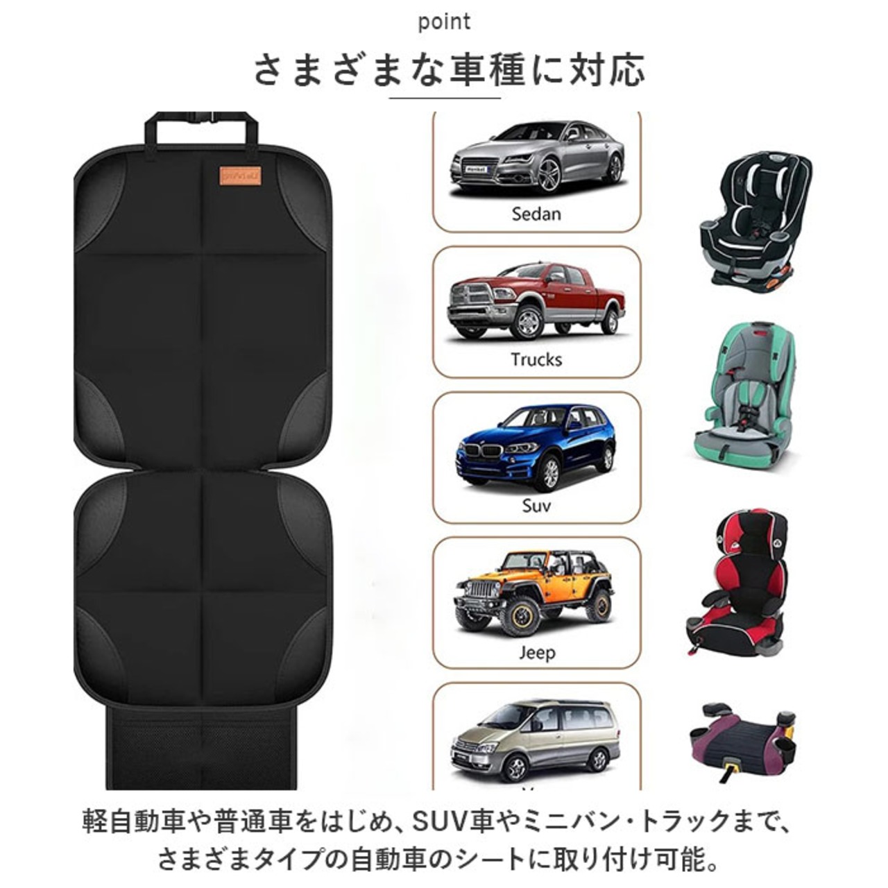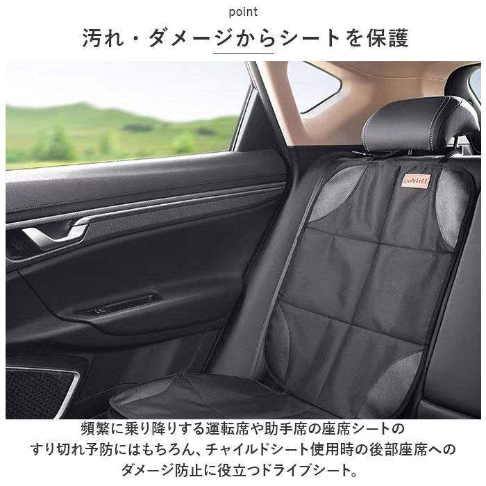 ・頻繁に乗り降りする運転席や助手席の座席シートのすり切れ予防にはもちろん、チャイルドシート使用時の後部座席へのダメージ防止に役立つドライブシート。