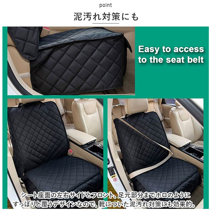 ・シート座面の左右サイドとフロント、足元部分までホロのようにすっぽりと覆うデザインなので、靴についた泥汚れ対策にも効果的。