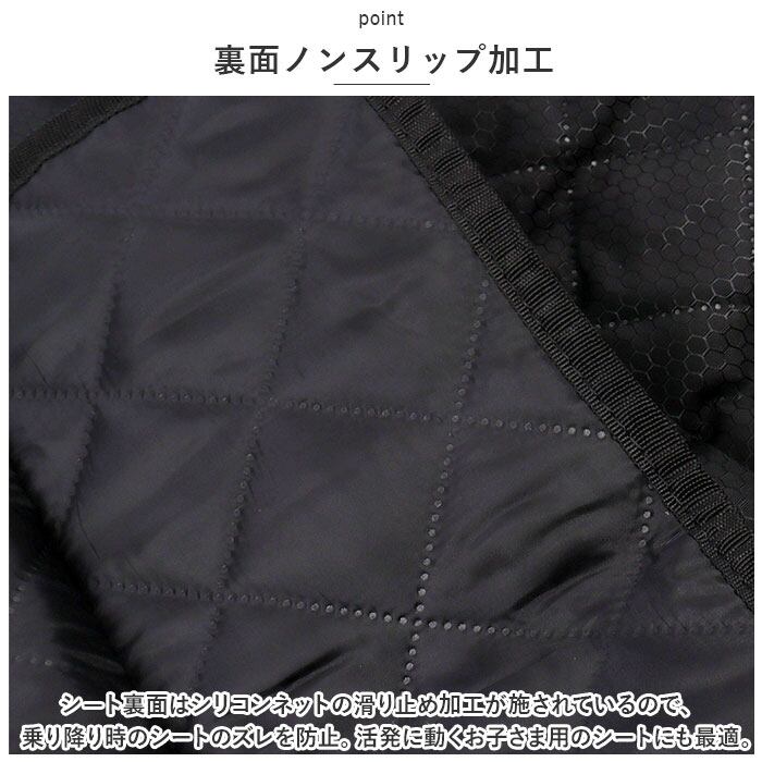 ・シート裏面はシリコンネットの滑り止め加工が施されているので、乗り降り時のシートのズレを防止。活発に動くお子さま用のシートにも最適。