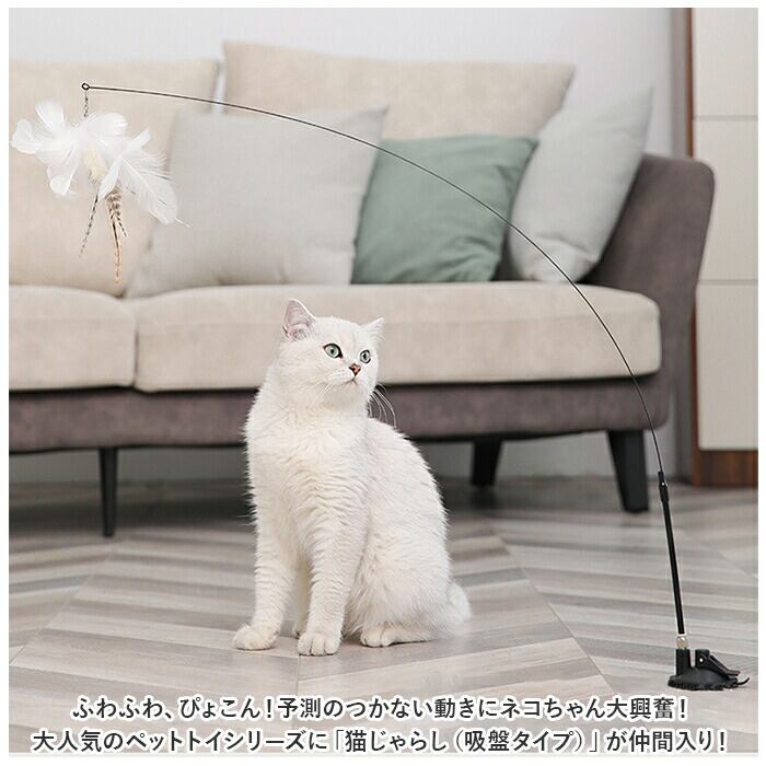 ・ふわふわ、ぴょこん!予測のつかない動きにネコちゃん大興奮!大人気のペットトイシリーズに「猫じゃらし(吸盤タイプ)」が仲間入り!