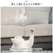 ・釣り竿のようにしなやなワイヤーロッドの先端に、ふわふわの羽根のおもちゃが付いた、楽しく遊べる猫じゃらしスティック!