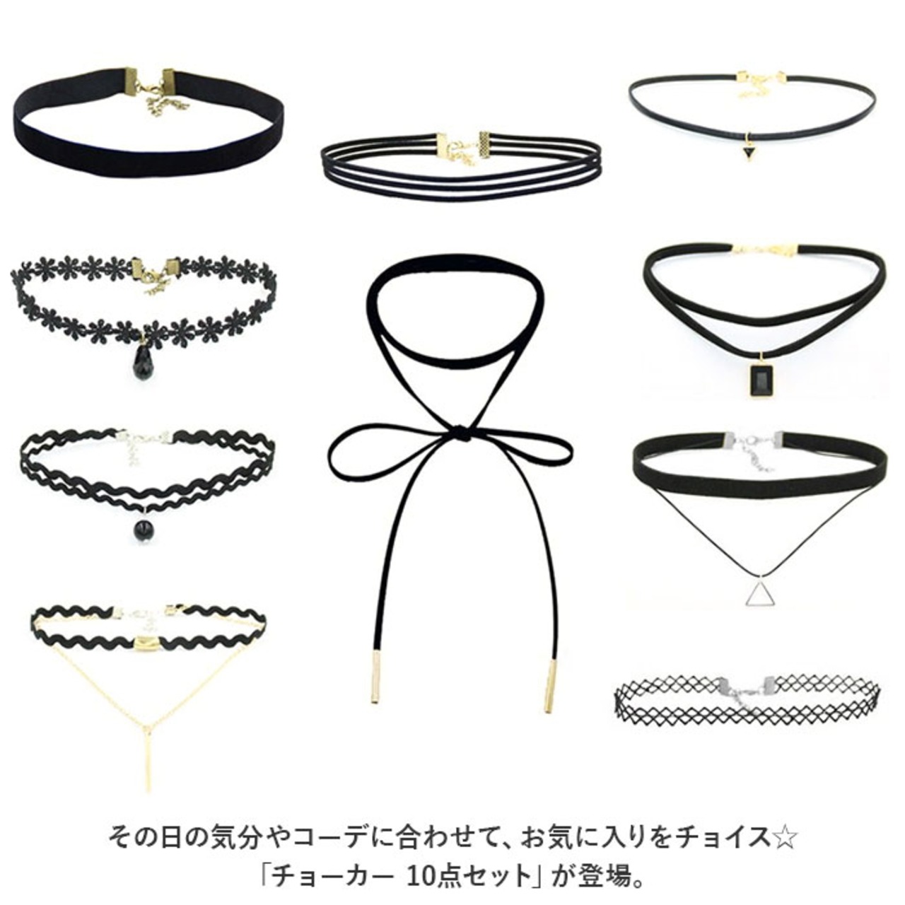 ・その日の気分やコーデに合わせて、お気に入りをチョイス☆「チョーカー 10点セット」が登場。