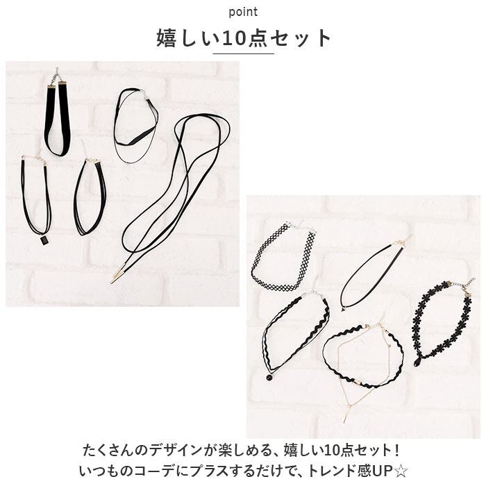 チョーカー 首 通販 ネックレス 10点セット セット アクセサリー アクセ ジュエリー 黒 ブラック シンプル タイト フィッ 首飾り 結婚式 パーティー お出かけ お呼ばれ 通勤 通学 カジュル 華やか かわいい おしゃれ レディース 女性