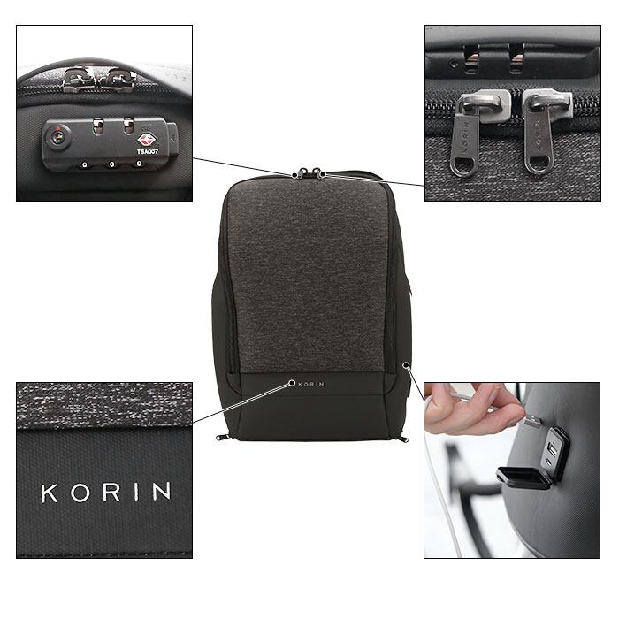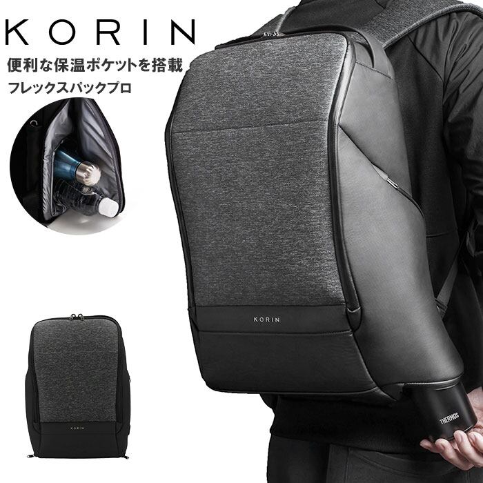 リュック メンズ ビジネス 通販 通勤 通学 ビジネスリュック ブランド コリンデザイン フレックスパックプロ Korin Design FlexPack PRO 撥水 はっ水 自立 直立 ワイヤーロック 防犯 TSAロック 不正開閉防止ファスナー シークレットポケット USBポート 保温ポケット