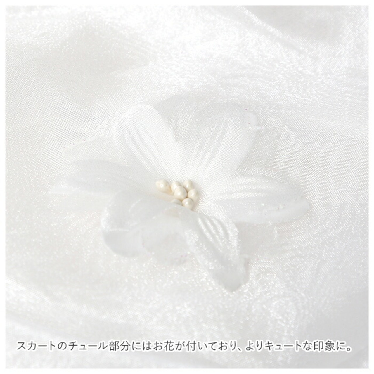 ・スカートのチュール部分にはお花が付いており、よりキュートな印象に。