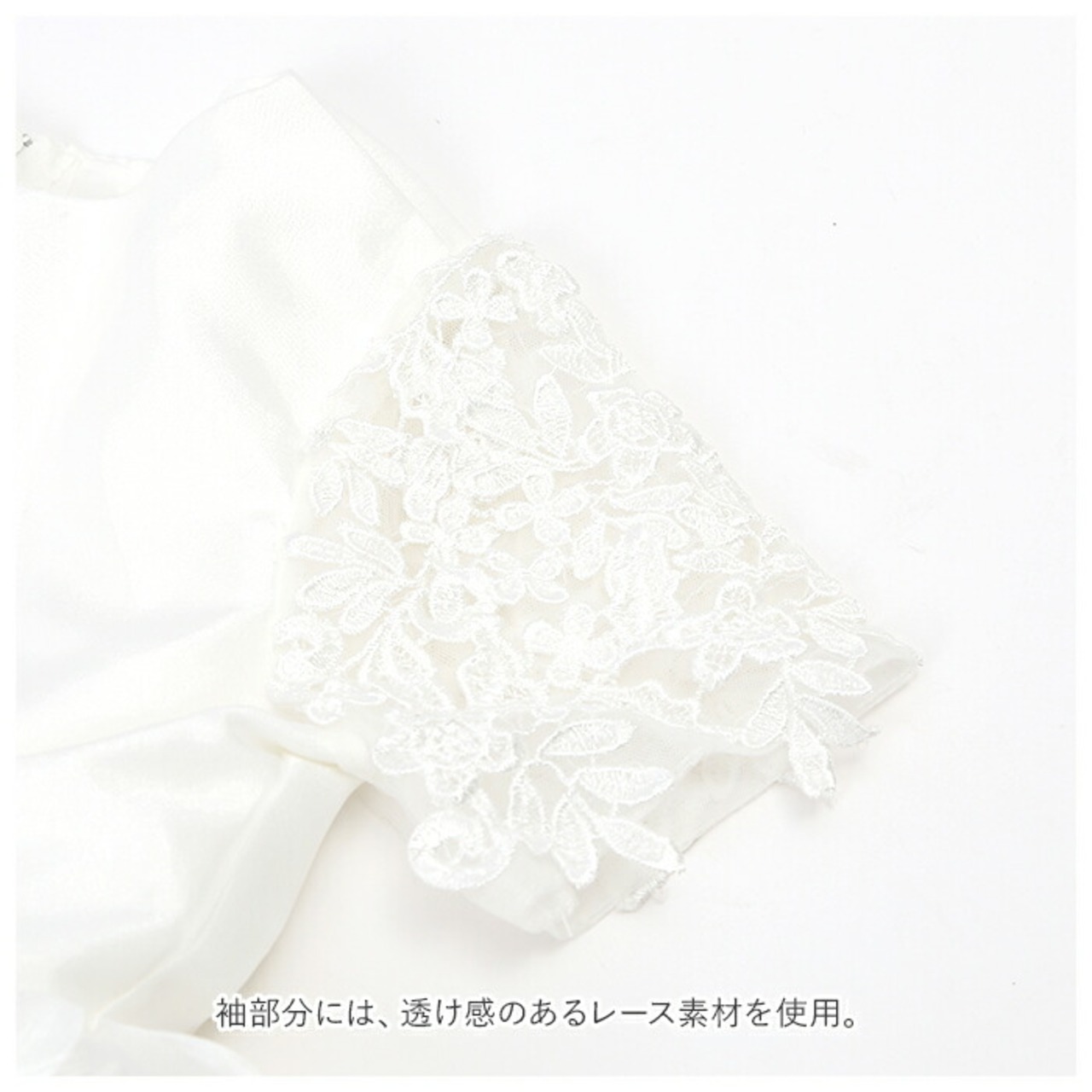 ・袖部分には、透け感のあるレース素材を使用。