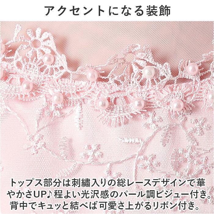 ・トップス部分は刺?入りの総レースデザインで華やかさUP♪程よい光沢感のパール調ビジュー付き。