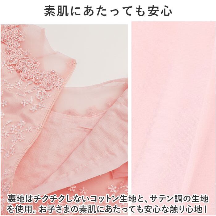 ・裏地はチクチクしないコットン生地と、サテン調の生地を使用。お子さまの素肌にあたっても安心な触り心地!