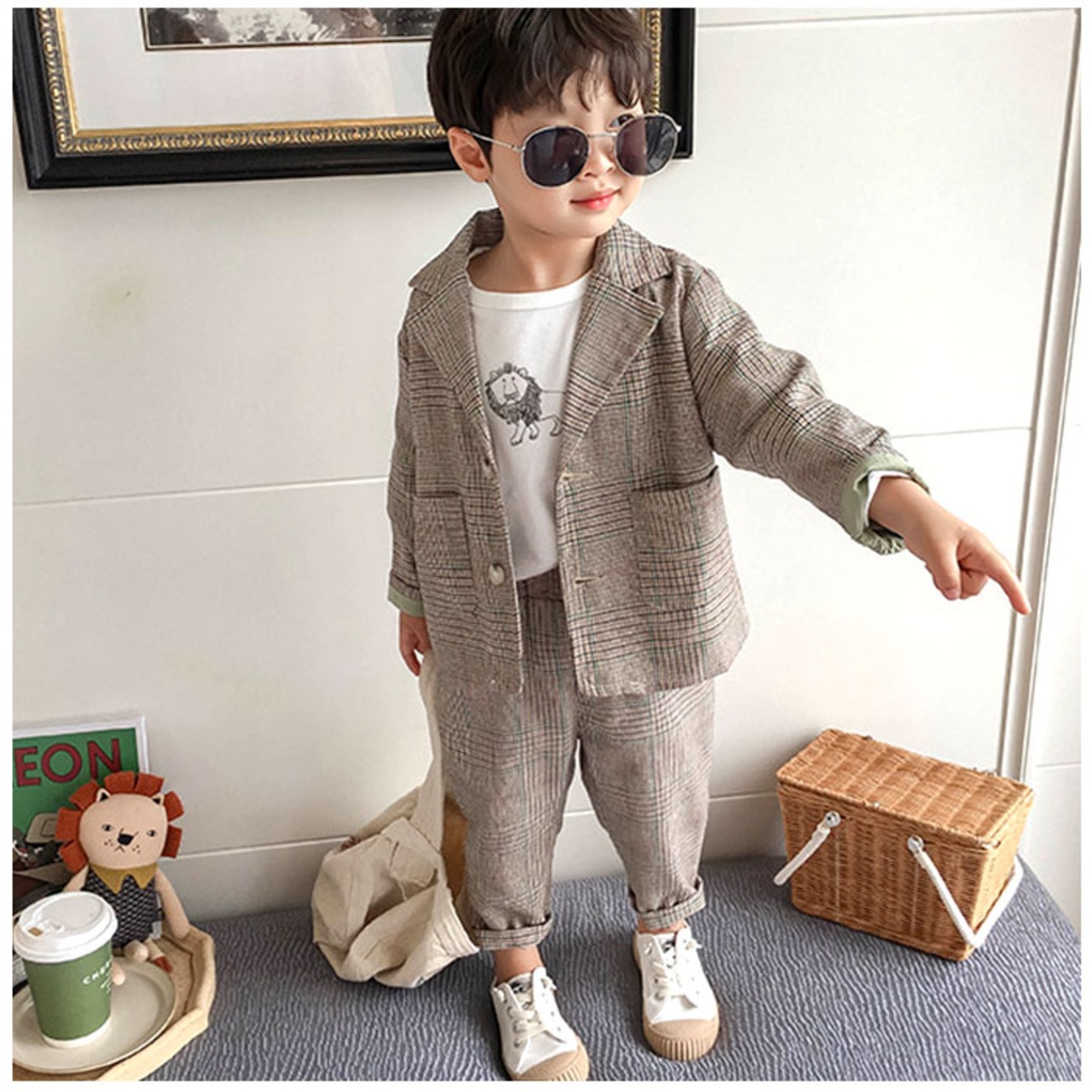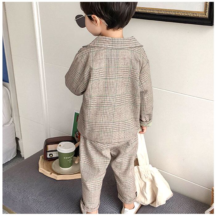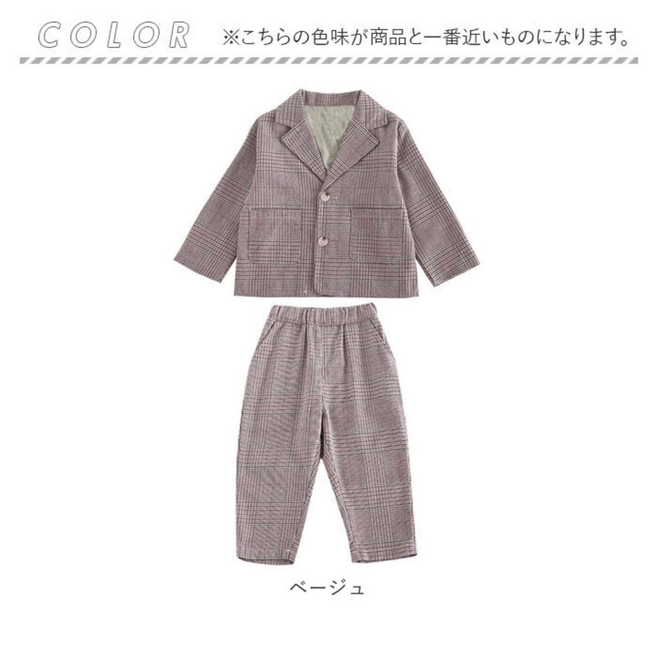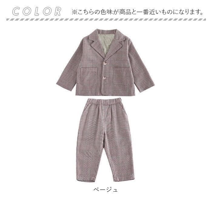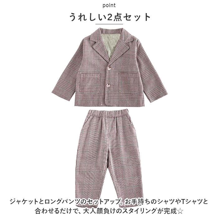 ・ジャケットとロングパンツのセットアップ。お手持ちのシャツやTシャツと合わせるだけで、大人顔負けのスタイリングが完成☆