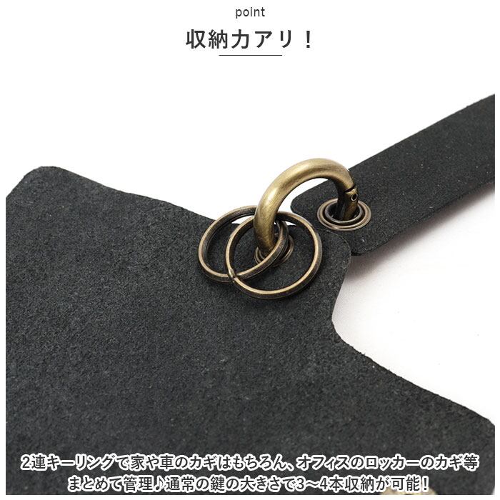 ・2連キーリングで家や車のカギはもちろん、オフィスのロッカーのカギ等まとめて管理♪通常の鍵の大きさで3~4本収納が可能!