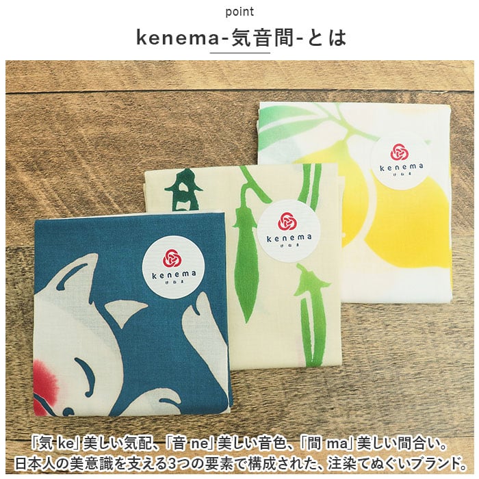 ・「気 ke」美しい気配、「音 ne」美しい音色、「間 ma」美しい間合い。日本人の美意識を支える3つの要素で構成された、注染てぬぐいブランド。