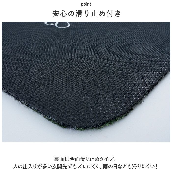 ・裏面は全面滑り止めタイプ。人の出入りが多い玄関先でもズレにくく、雨の日なども滑りにくい!