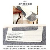 ・フタカバーに縫い付けられたプラスチックの樹脂板を使って、フタ先端に引っ掛ける。位置を調整し、吸着面を強く押さえればOK。