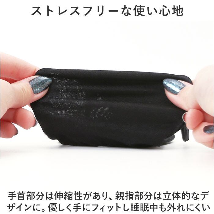 ・手首部分は伸縮性があり、親指部分は立体的なデザインに。優しく手にフィットし睡眠中も外れにくい◎