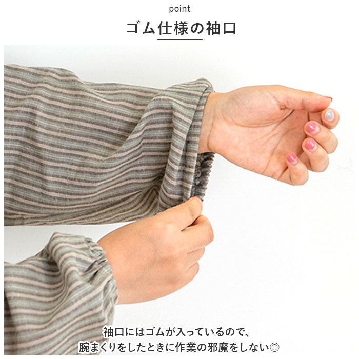 ・袖口にはゴムが入っているので、腕まくりをしたときに作業の邪魔をしない◎