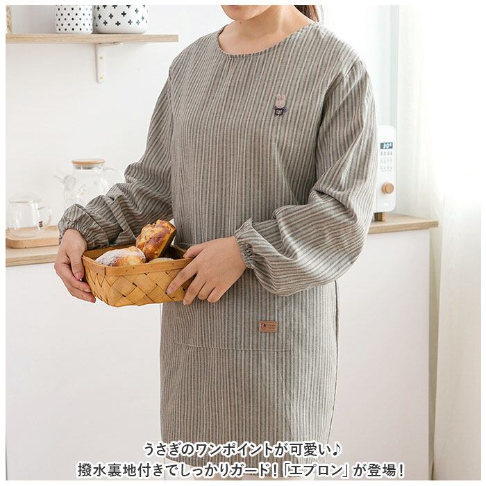 ・うさぎのワンポイントが可愛い♪撥水裏地付きでしっかりガード!「エプロン」が登場!