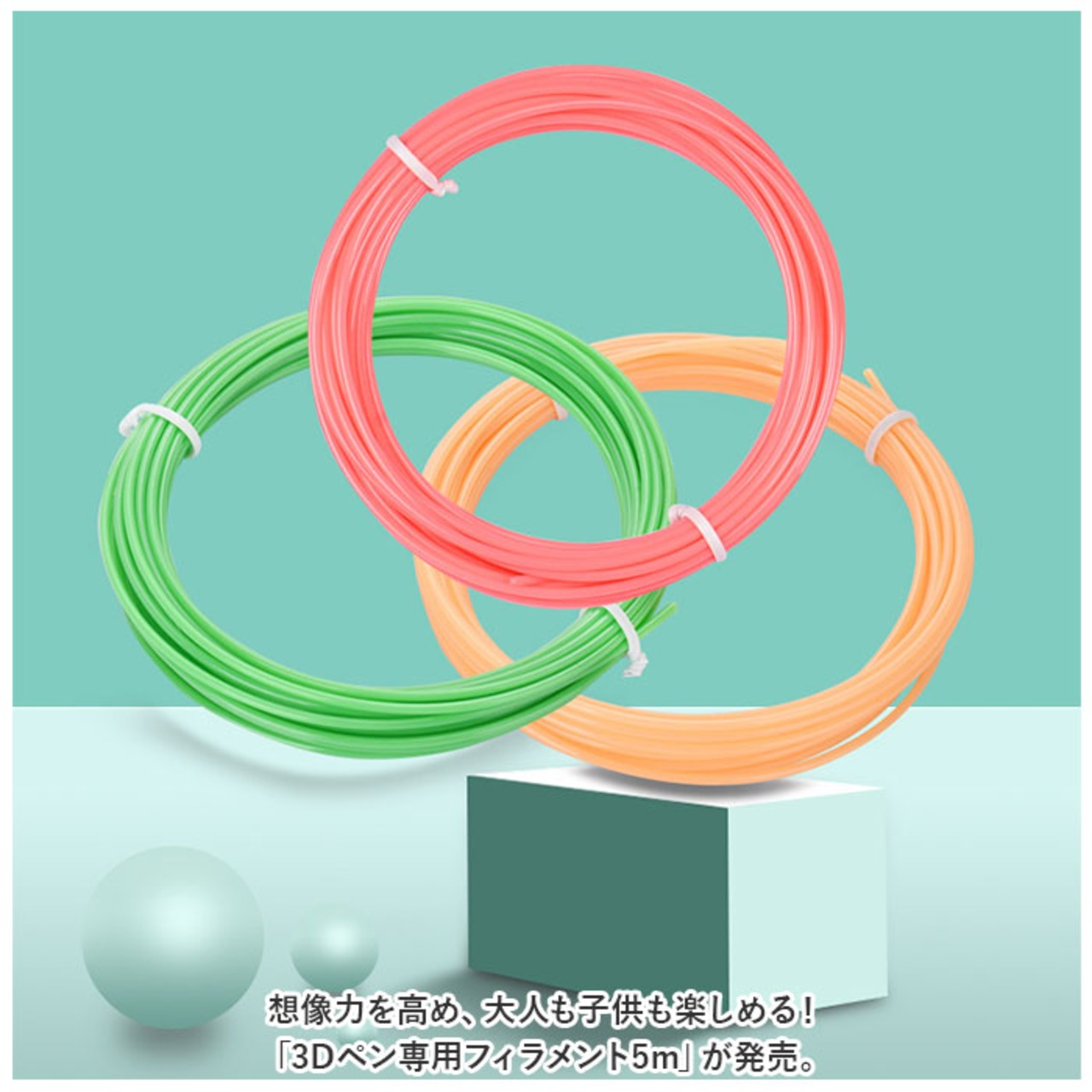・想像力を高め、大人も子供も楽しめる!「3Dペン専用フィラメント 5m」が発売。