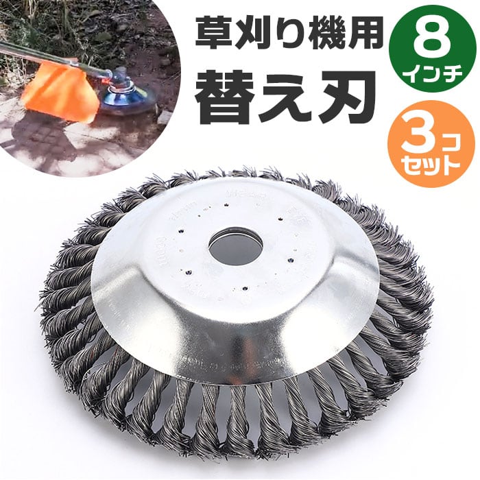 草刈機 替刃 200mm 3個セット 通販 草刈り機 替え刃ブラシ 替え刃 ブラシ 8インチ 20センチ 20cm 草刈り ブラシカッター 草刈機用チップソー 草刈ブレード 3個 3個入り 草刈り交換用ヘッド ガーデニング 庭仕事 草取り 研磨 ガーデン 3点