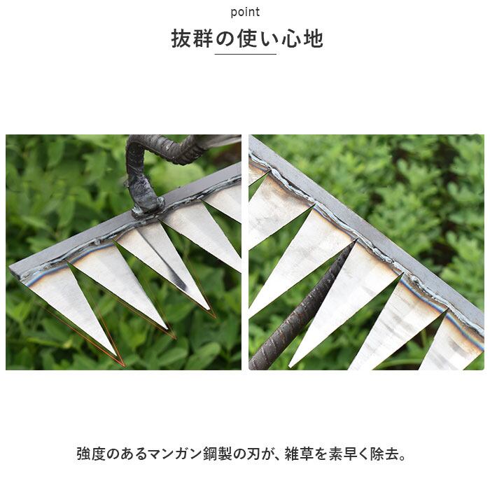 ・強度のあるマンガン鋼製の刃が、雑草を素早く除去。