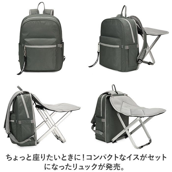・ちょっと座りたいときに!コンパクトなイスがセットになったリュックが発売。