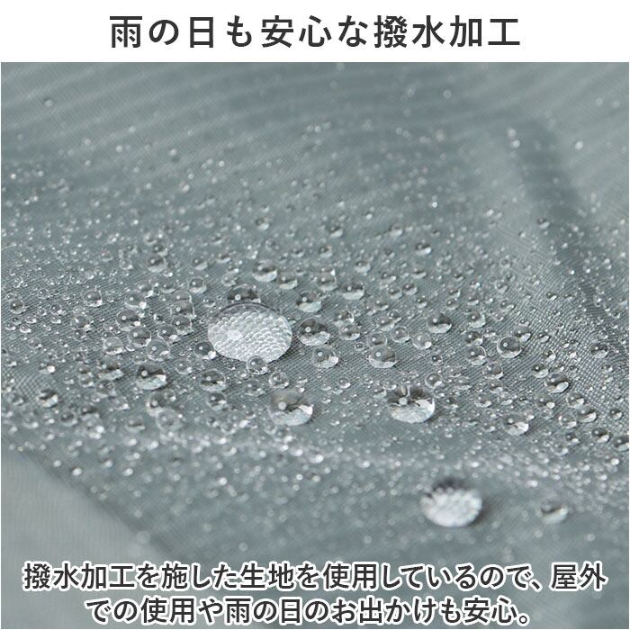・撥水加工を施した生地を使用しているので、屋外での使用や雨の日のお出かけも安心。