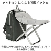 ・背面のメッシュ部分は、イスにかければクッションにもなる便利な設計。