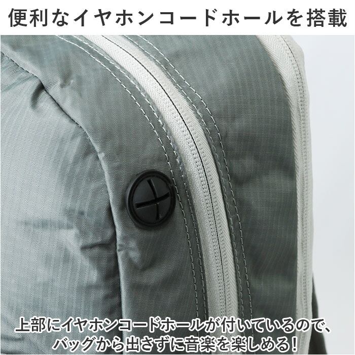 ・上部にイヤホンコードホールが付いているので、バッグから出さずに音楽を楽しめる!